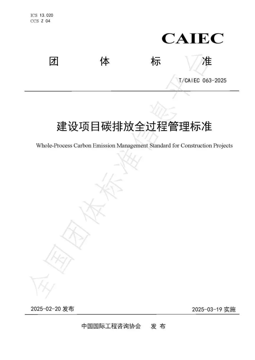 新團(tuán)標(biāo)發(fā)布!《建設(shè)項(xiàng)目碳排放全過程管理標(biāo)準(zhǔn)》(T/CAIEC 063—2025)